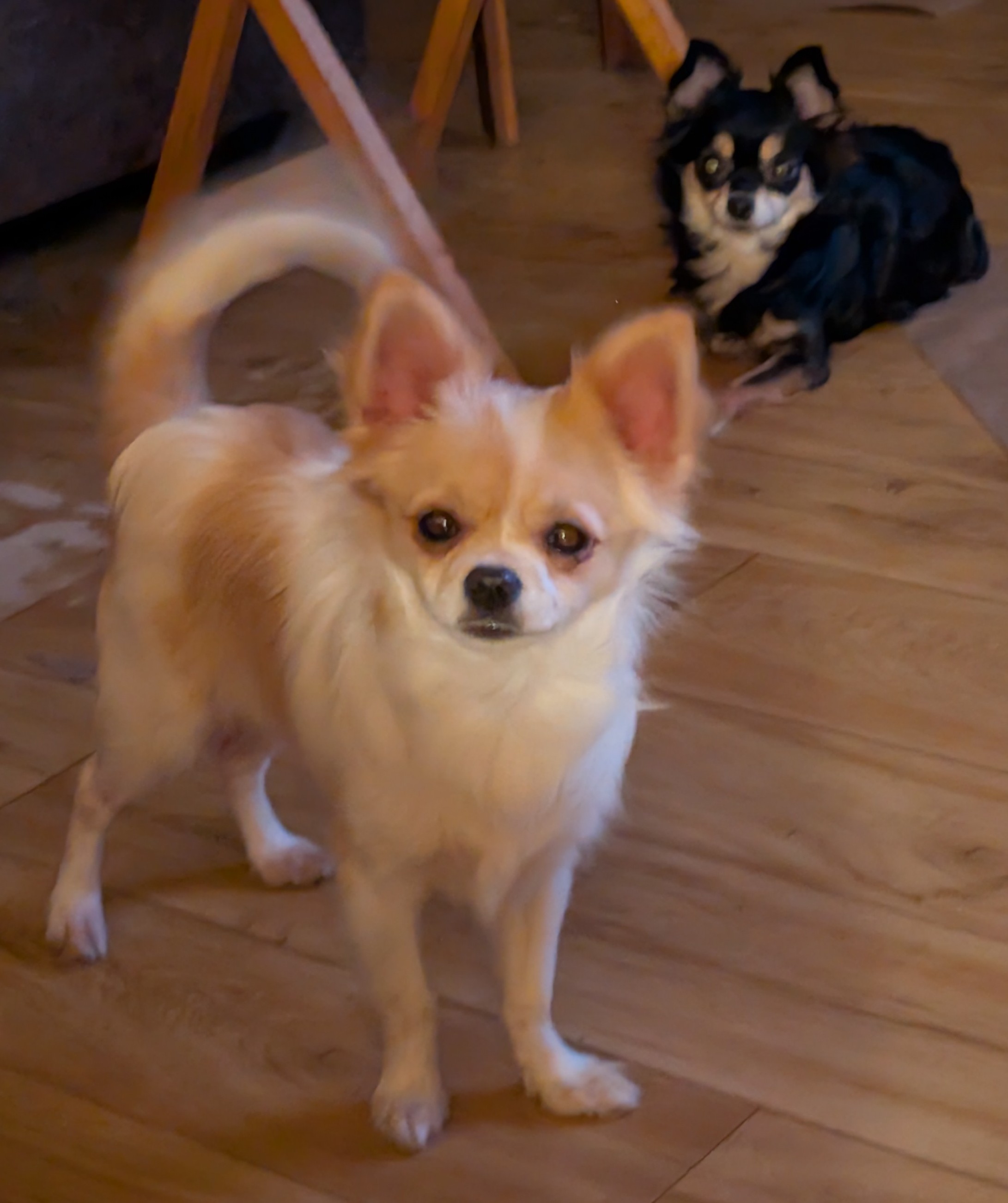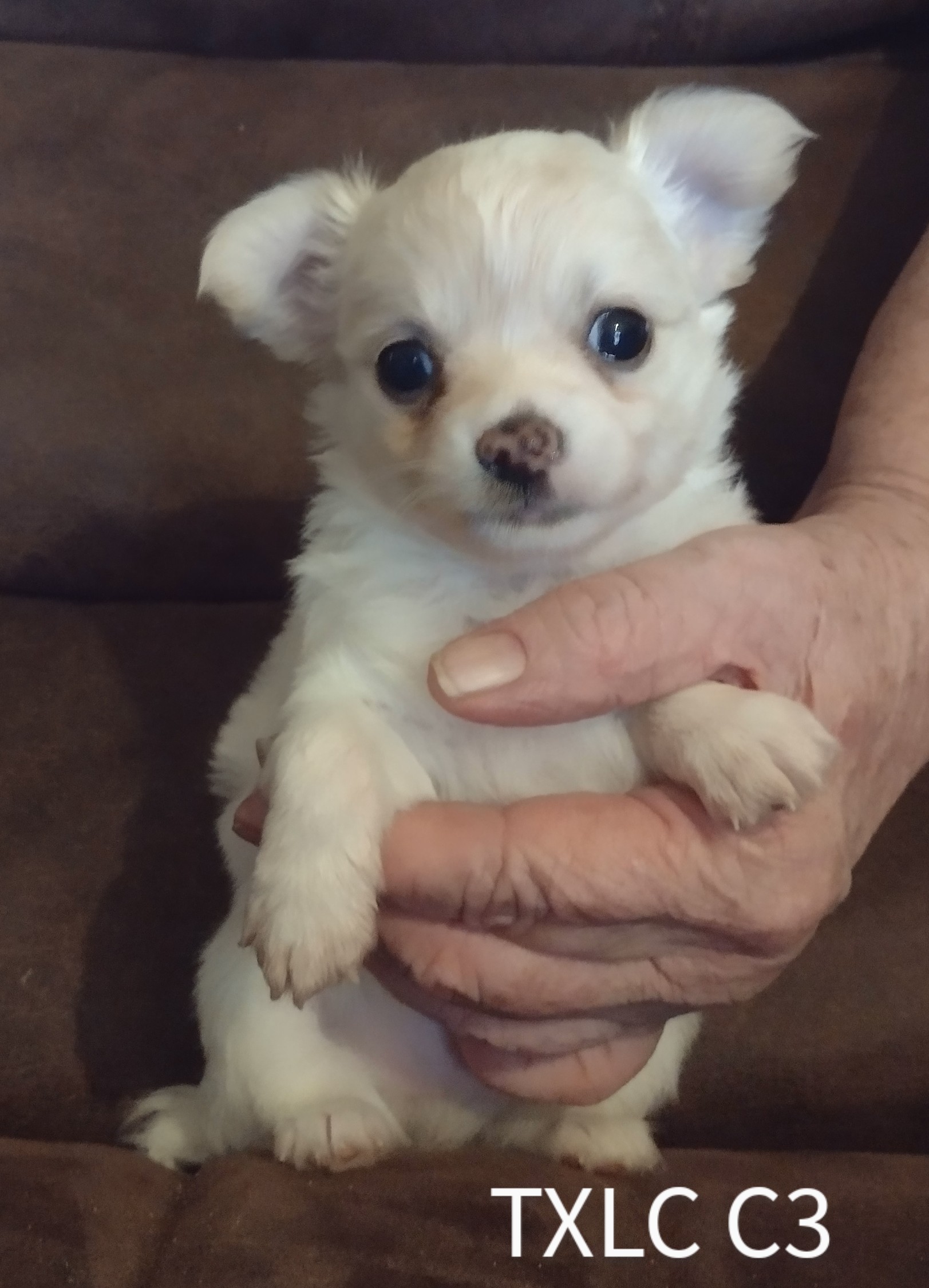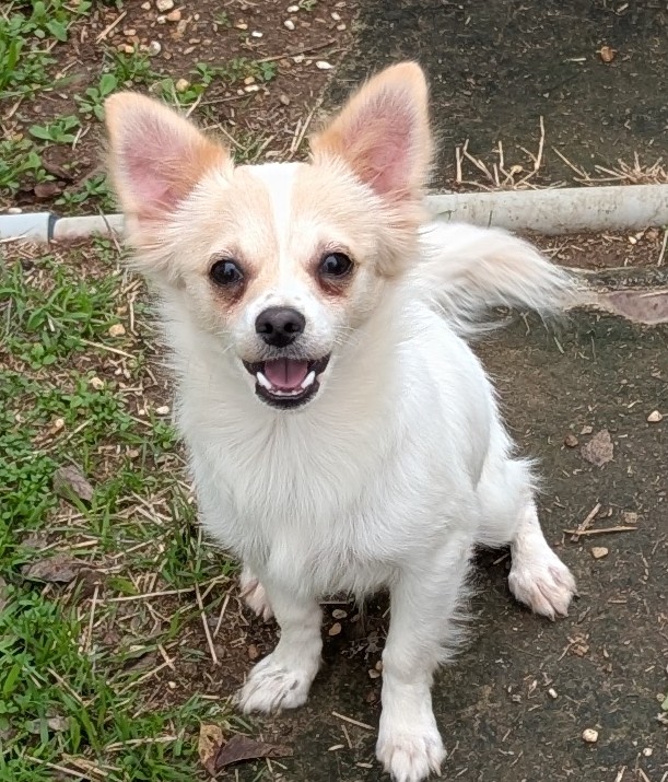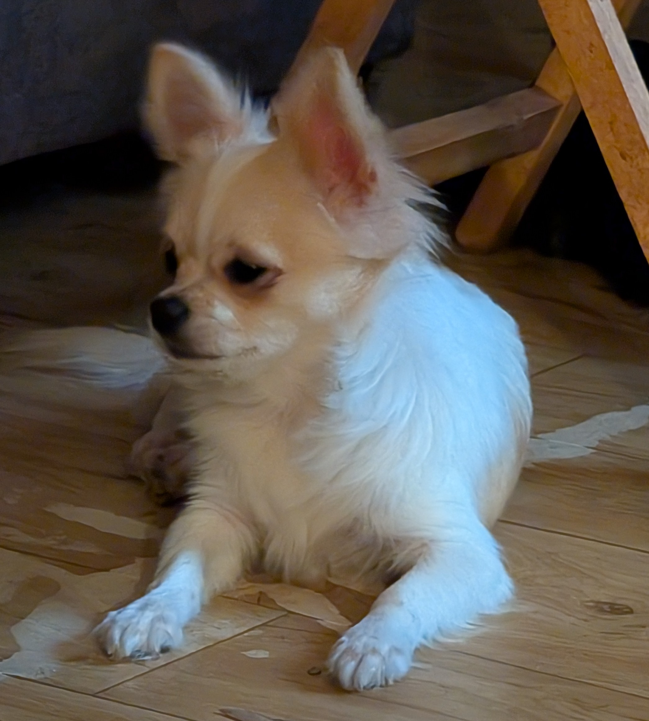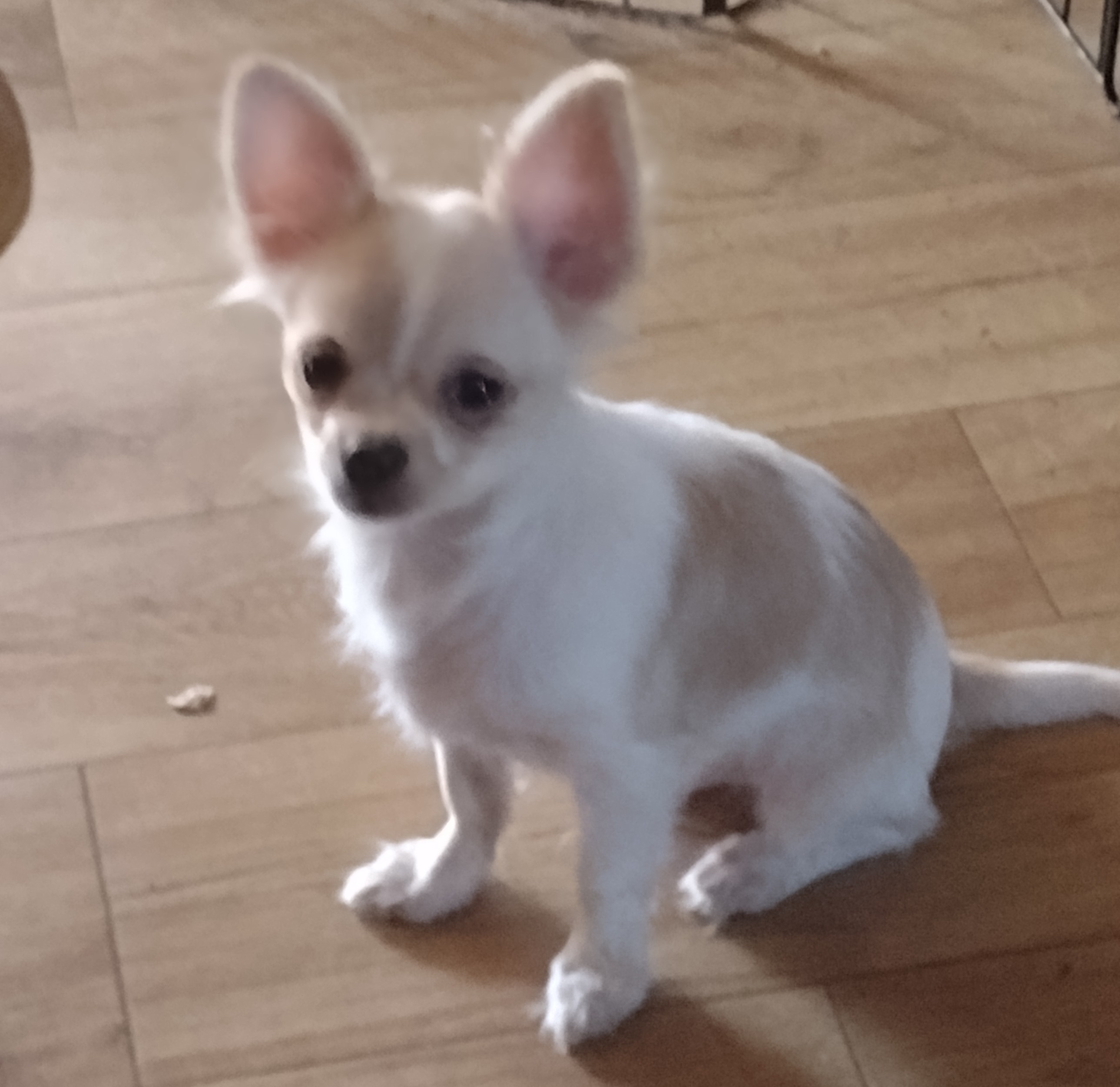 Robert 3/15/25 White with Fawn ears and a spot on his back, he has the shorter nose, great