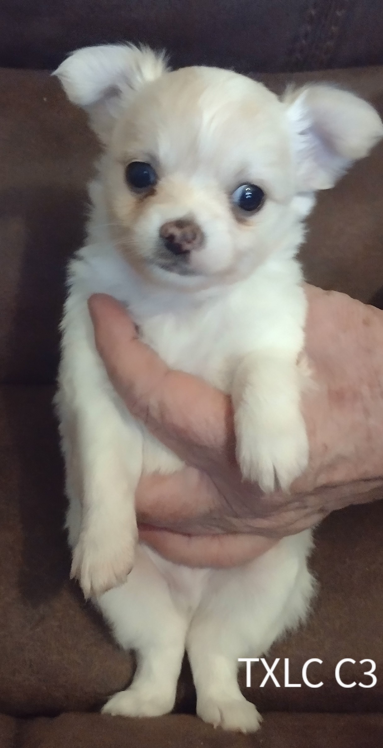 to Mona 3/15/25 White with Fawn ears and a spot on back. He has one lazy ear on his right. if he`s